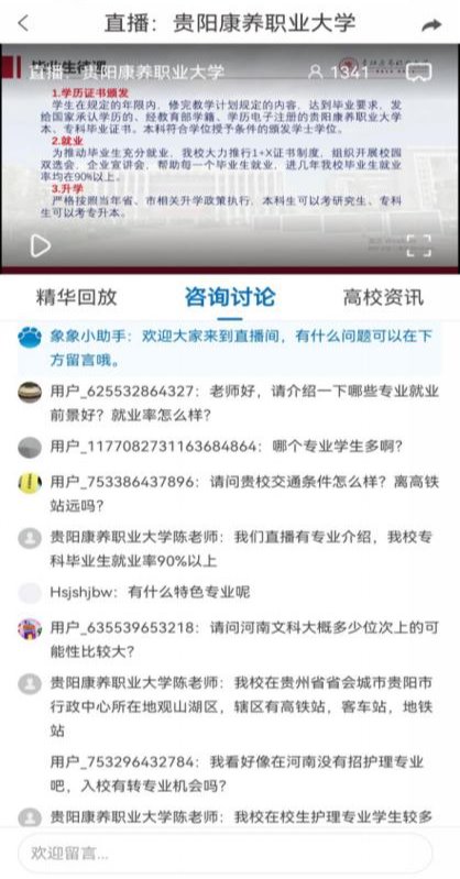 在直播期间,有很多考生及考生家长参与互动,针对录取原则、录取分数线、就业形势等提出问题。学校招生就业处老师对提出的问题一一解答