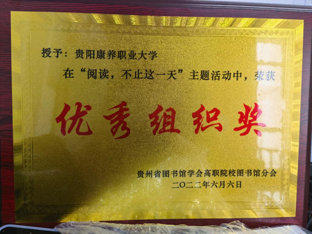 恭喜我校图书馆荣获2022年贵州省图书馆学会举办“阅读,不止这一天”4.23主题活动“优秀组织奖”。
