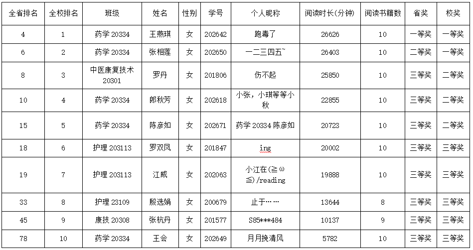 恭喜我校药学20334王燕琪等10名同学,分获校级奖励一等奖、二等奖、三等奖。