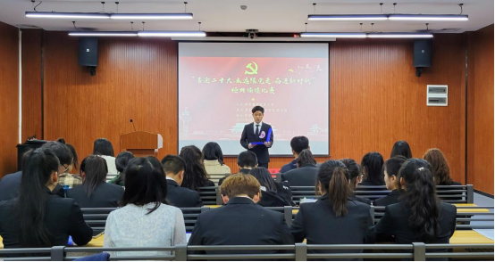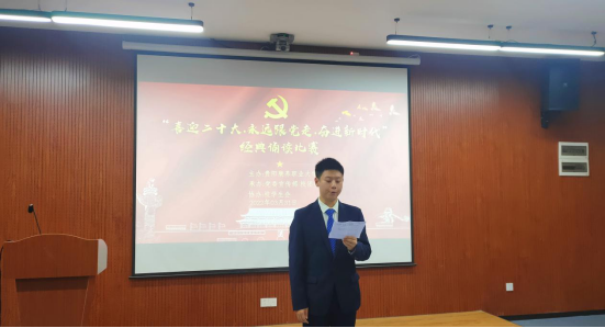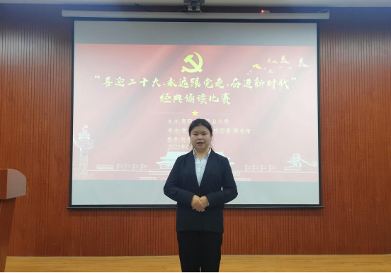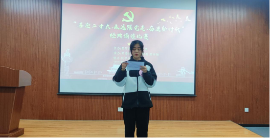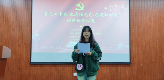 为迎接党的二十大、省十三次党代会胜利召开,纪念中国共产主义青年团成立100周年,丰富大学生课余文化生活,弘扬中华优秀传统文化和社会主义先进文化,营造浓郁的校园人文气息和书香氛围,在4月23日世界读书日来临之际,校团委2022331图书馆二楼多功能厅举办了主题为“喜迎二十大、永远跟党走、奋进新征程”红色经典诵读赛。校团委副书记黄希出席并担任了评委,担任本次比赛活动的评委还有校团委陈怡老师和陈燕老师,本次比赛由校学生会干部张毅同学主持。