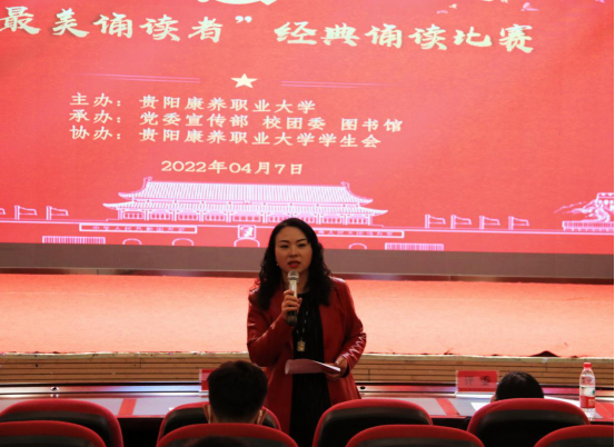 为深入学习贯彻党的十九大和十九届历次全会精神,弘扬中华优秀传统文化和社会主义先进文化,营造浓郁的校园人文气息和书香氛围,在第27个世界读书日来临之际,校团委于2022年4月7日,在学术报告厅举办了主题为“最美朗读者”经典诵读比赛。担任本次比赛活动的评委分别是黄朝霞老师、王海香老师和刘茜老师,本次比赛由校学生会执行主席胡艳同学主持。