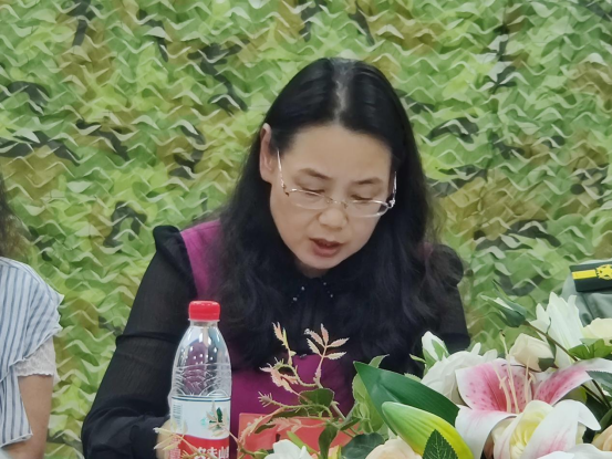 图一 学校人武部部长杨晓丽介绍参会领导