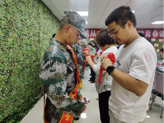 图七 各位领导为入伍新兵佩戴光荣花
