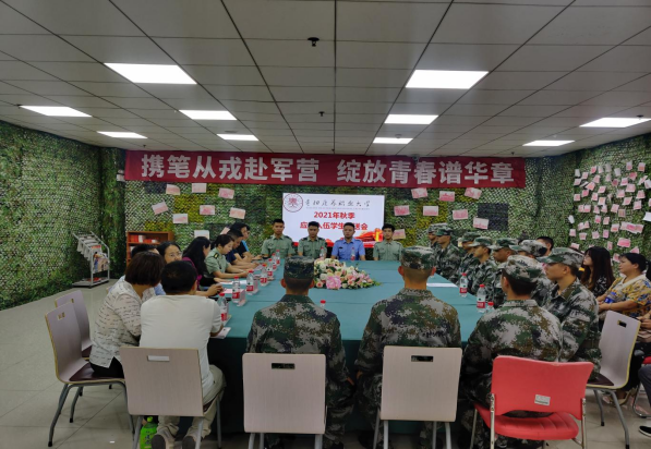 9月14日,我校在图书馆一楼学生事务中心举行了贵阳365游戏盒子_beat365官方入口素描网_完美365体育app下载安装职业大学2021年秋季应征入伍学生欢送会,参加此次会议的有学校党委委员、副院长杨虹,学校人武部专武干部、各系征兵工作站站长、副站长、学生科科长,推荐入伍新兵、退役复学学生,入伍新兵家长代表等,会议由学校人武部部长杨晓丽主持。